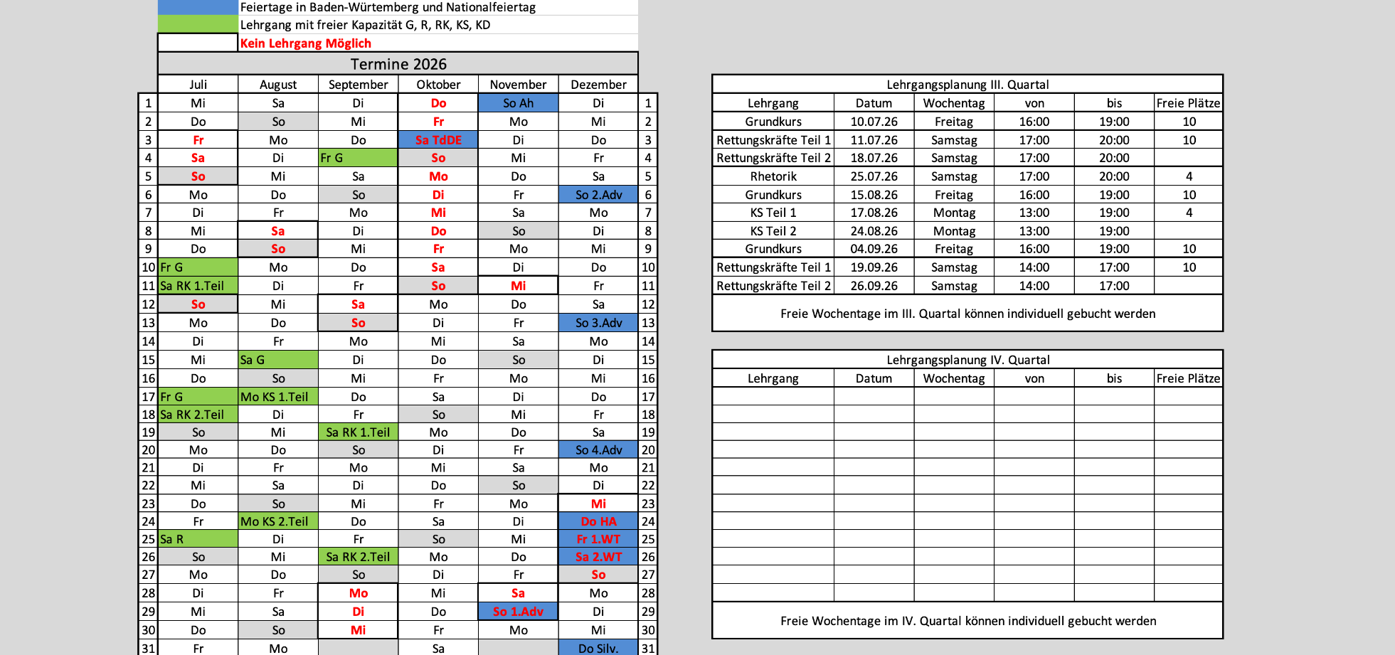 Terminplanung 2026